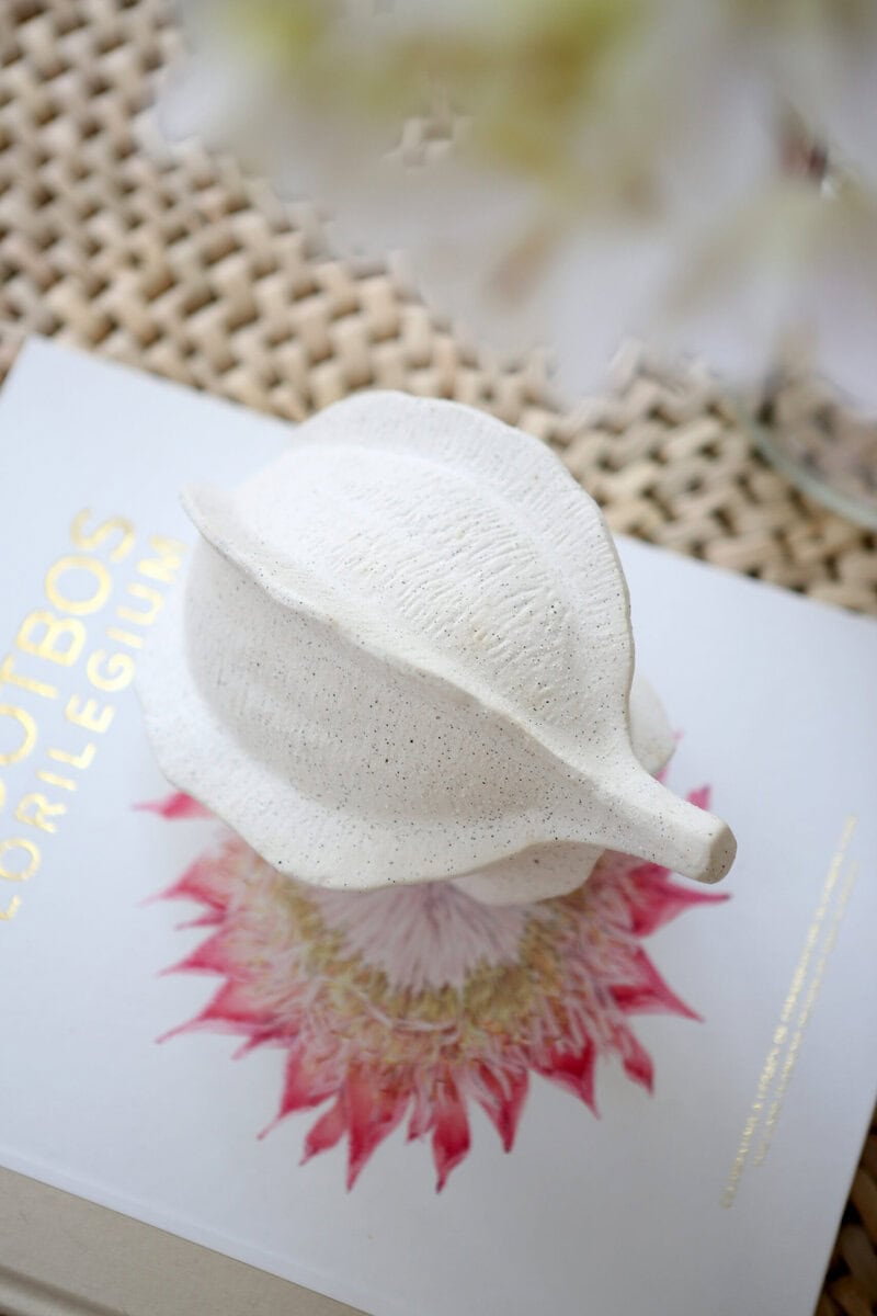 Textured Clay Pod Crafted from natural clay with an artisanal textured finish, this sculptural pod adds quiet elegance to any space. Beautiful on a stack of books, a coffee table, or nestled among treasures on a bookshelf.